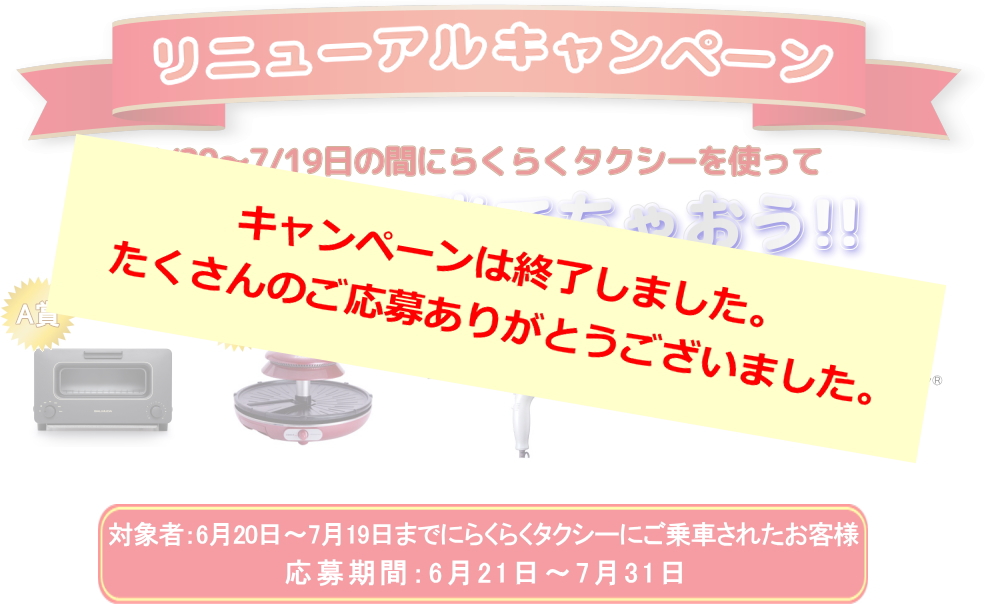 6月20日~7月19日までにらくらくタクシーにご乗車されたお客様