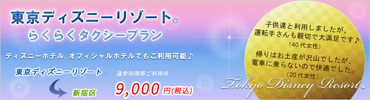 ディズニーリゾートと東京都内各地をお得な定額料金タクシーで送迎する、ディズニーリゾート送迎タクシープラン【ジャンボタイプ】です。