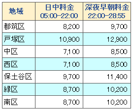 通常時間帯(05:00〜21:55)、深夜早朝時間帯(22:00〜04:55)